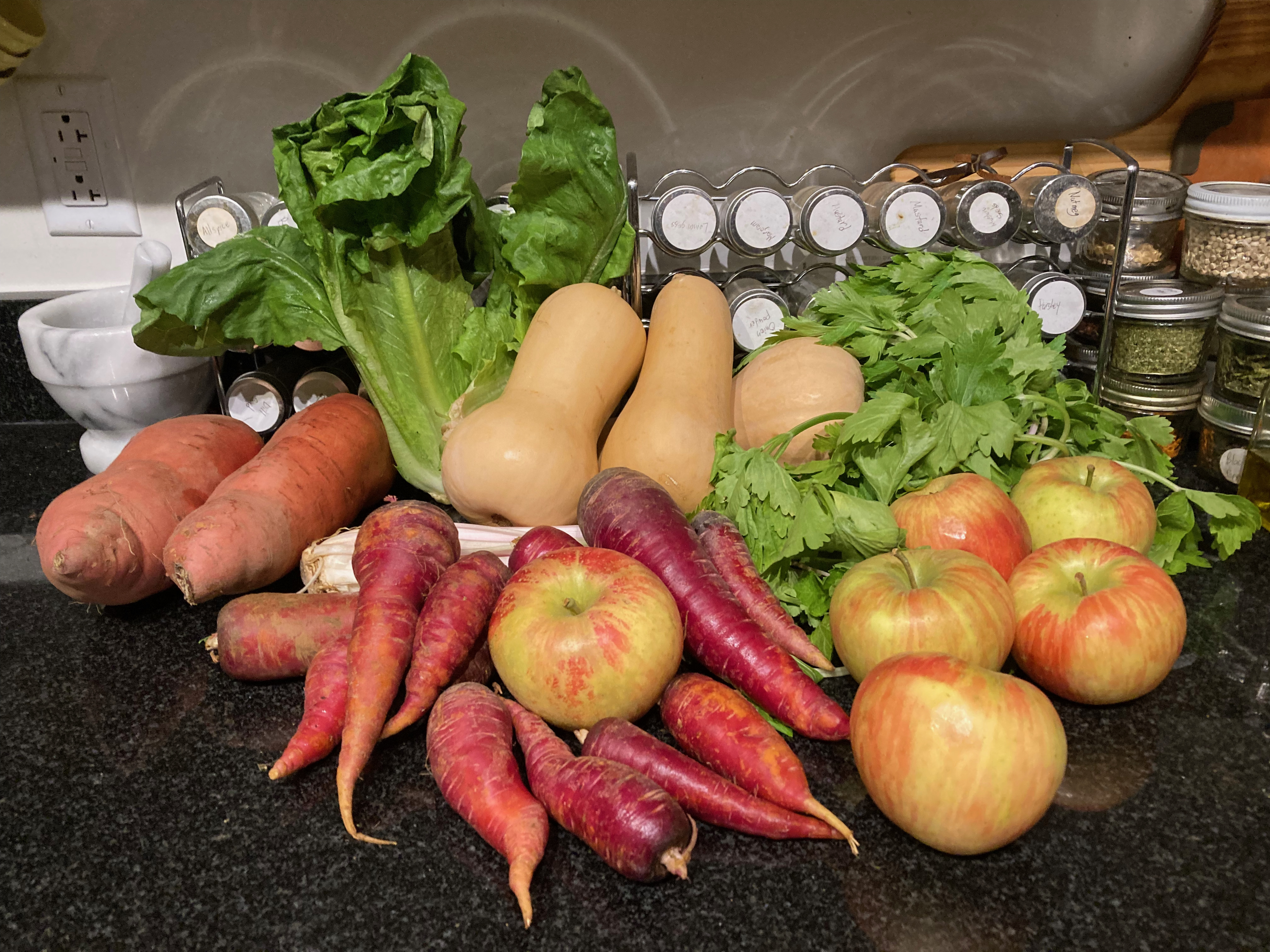 It’s been a busy month, and the next few weeks are forecast to be even more chaotic. Holidays, and conferences, and packing, and travel, and cleaning, and testing, and vaccines, and exhaustion, and ickiness, and packing, and laundry, and painting, and chores. And…well…we’re taking this week off of the delivery, but I’m still not sure we’ll catch up on the vegetable consumption.