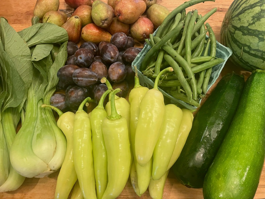 The radishes and turnips we planted have sprouted–we should put in more the next time we go to the garden. One of the edamame plants has emerged, the others I’ll assume were eaten by birds. Beans are starting to dry on the vine. The kale that we’ve been eating all season was getting covered in enough bugs that I just harvested it all. The new greens are sprouting. The chard seeds have been put in the ground. They’re spikier than I would’ve guessed! The tomatillos won’t last much longer. The tomatoes, might hold out a bit more. The peppers are dwarfed by the dahlia and the marigold. I cut back the flowers, but not sure it’s doing the peppers much good. I put some cilantro seeds in the ground. Wondering if we’ll eat any this fall, if it will be a spring surprise, or if it will sprout at all.