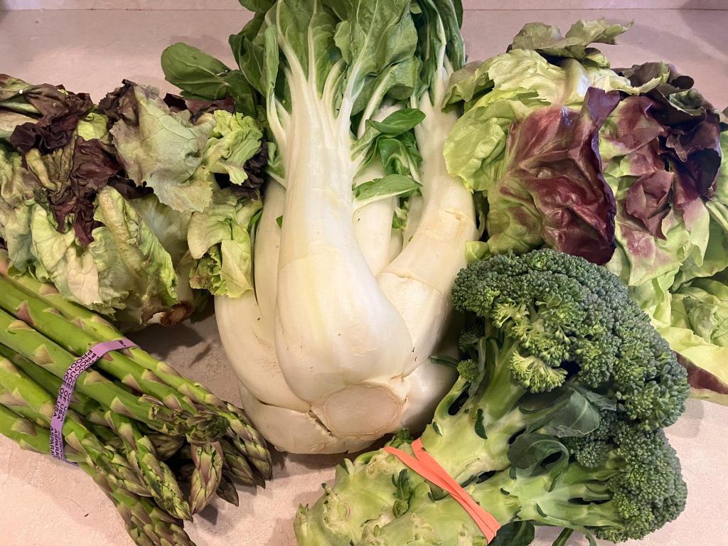 We skipped produce pickups while we were out of town. We ate radishes and peppers and carrots dipped in ranch fun dip on the road. We took squash and sweet potatoes and parsley and peppers to family and friends. But sick weeks followed by travel weeks meant we ended up with some very sad foods in the fridge. Some got tossed in the compost (applesauce that molded weirdly quickly), some got sauced (lettuce into a cream dip), some is destined for soup (chard once the Royal Coronas finish cooking).